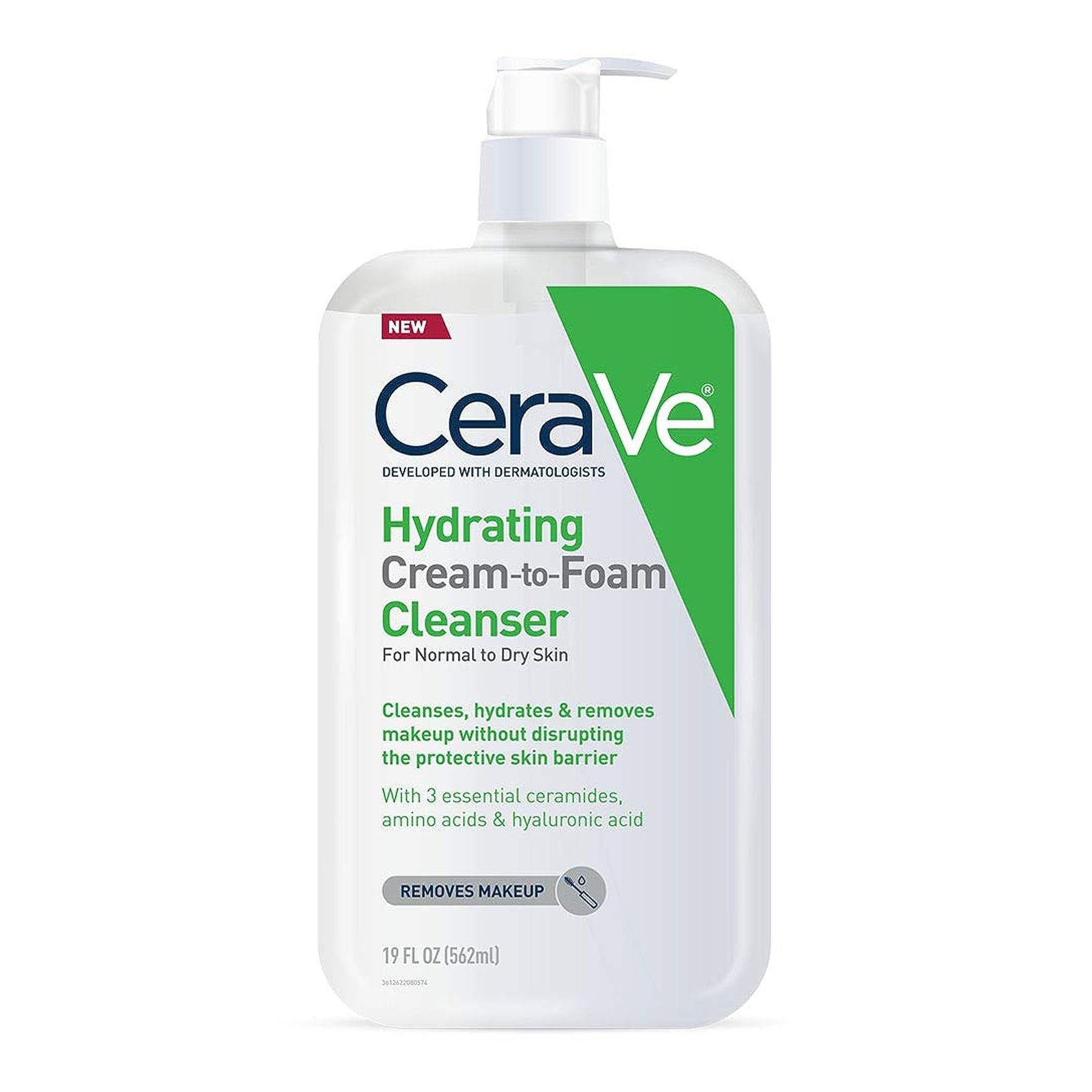 CeraVe Hydrating Cream-to-Foam Cleanser – Face Wash & Makeup Remover for Normal to Dry Skin with Hyaluronic Acid | Fragrance-Free, Non-Comedogenic, 19 fl oz