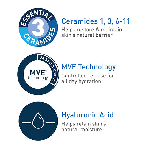 3 Essential Ceramides: Formulated with Ceramides 1, 3, and 6-II to restore the skin’s protective barrier and lock in moisture.