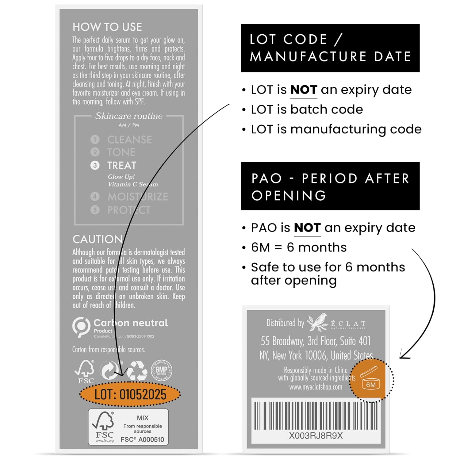 Brighter, Radiant Skin: Reveal your natural glow with Eclat Skincare Vitamin C Face Serum powered by 3-O Ethyl Ascorbic Acid. This brightening serum enhances radiance and promotes a refreshed, luminous complexion.