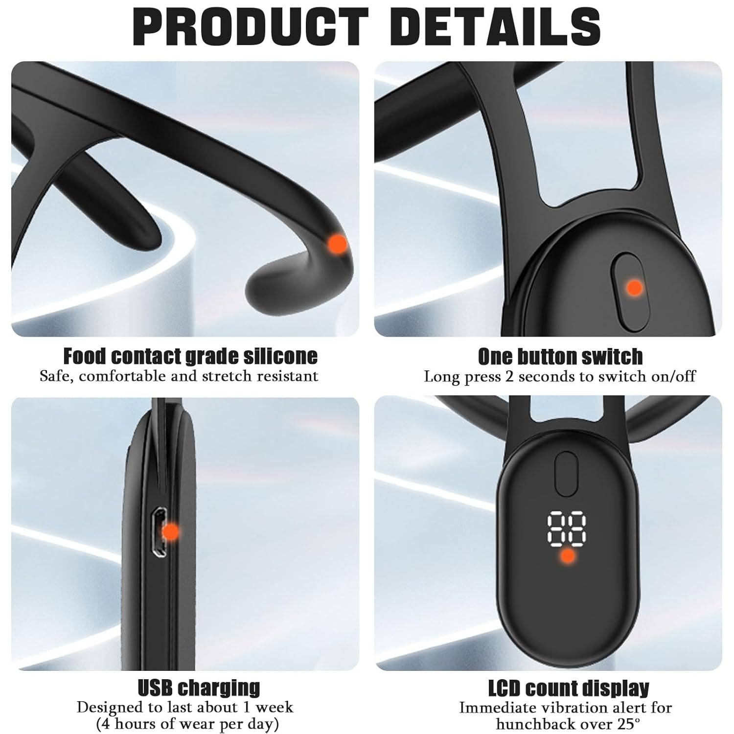✔ Real-time posture monitoring with smart vibration reminders