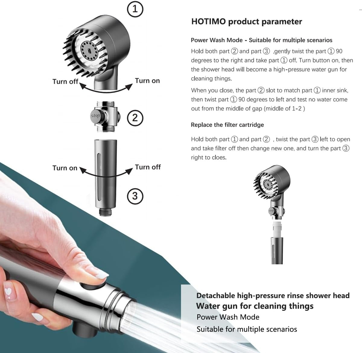 - ABS environmental material: Crafted from premium ABS eco-friendly material, this detachable filtered handheld shower head combines lightweight design with exceptional durability for a sustainable bathing experience. It is paired with a 75-inch triple-layer braided stainless steel hose, engineered with burst-resistant technology to ensure safety and long-lasting performance under high water pressure.